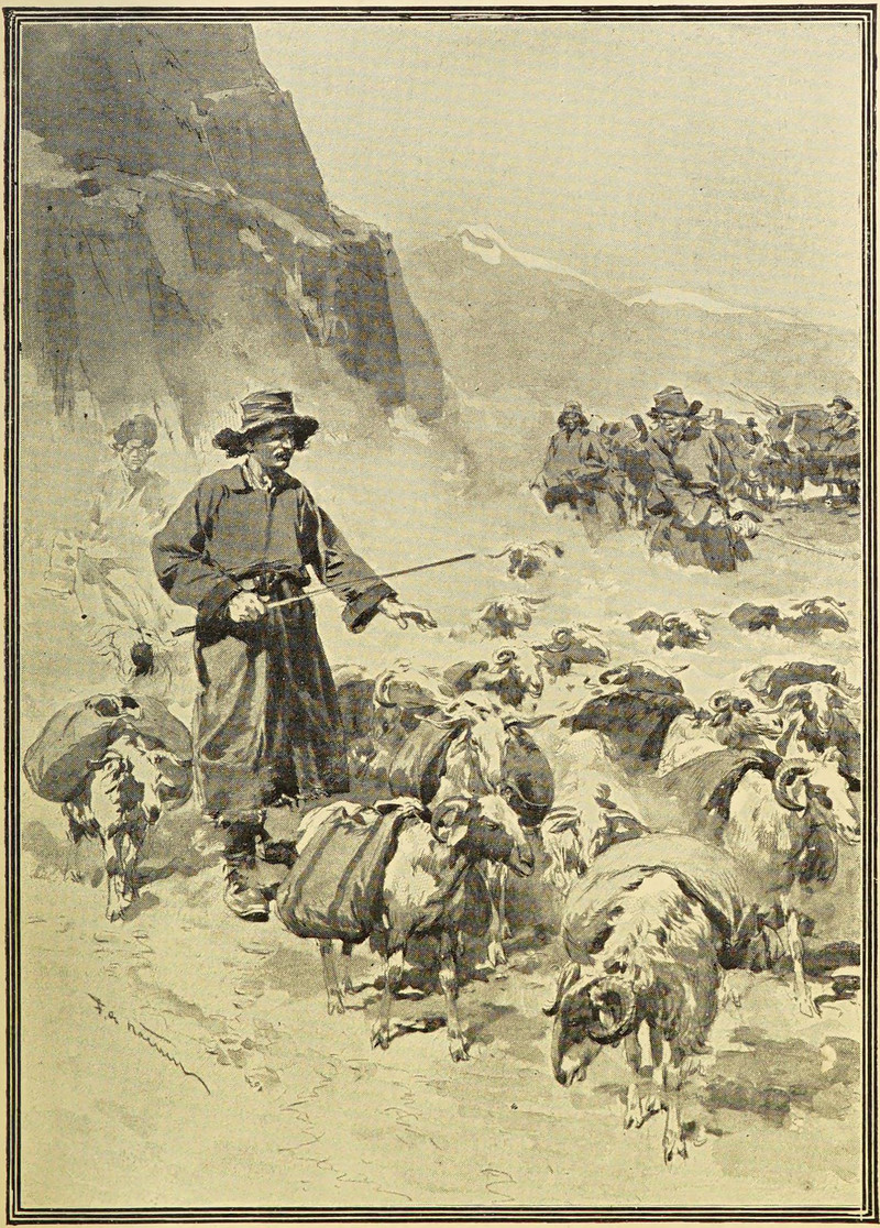 #vintage illustration #goat #1900s #illustration #tibet #goatherd