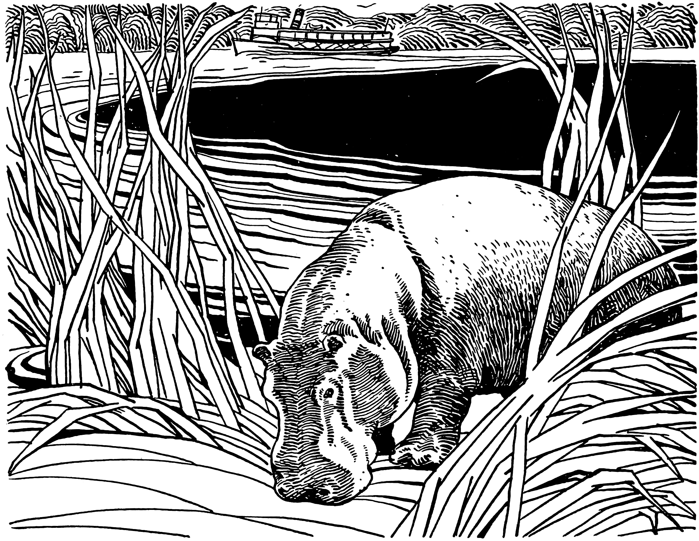 #vintage illustration #hippo #1940s #illustration