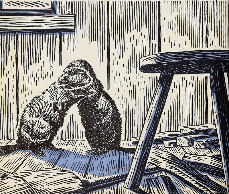 #vintage illustration #animal fight #1940s #illustration #beaver