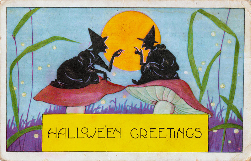 #vintage illustration #witch #hallowe'en #1900s #vintage postcard #illustration #postcard