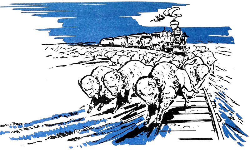 #vintage illustration #train #locomotive #buffalo #1960s #illustration