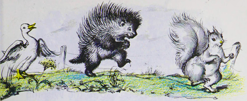 #vintage illustration #porcupine #squirrel #1970s #illustration #animal friends