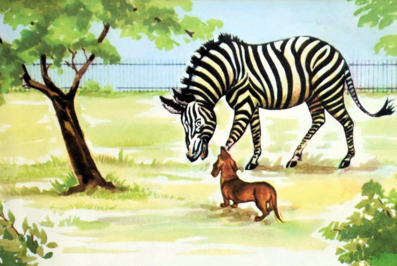 #vintage illustration #dog #1940s #illustration #zebra #animal friends