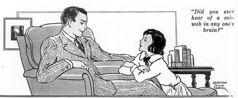 A cobweb in the brain.  From Wee Wisdom1934.