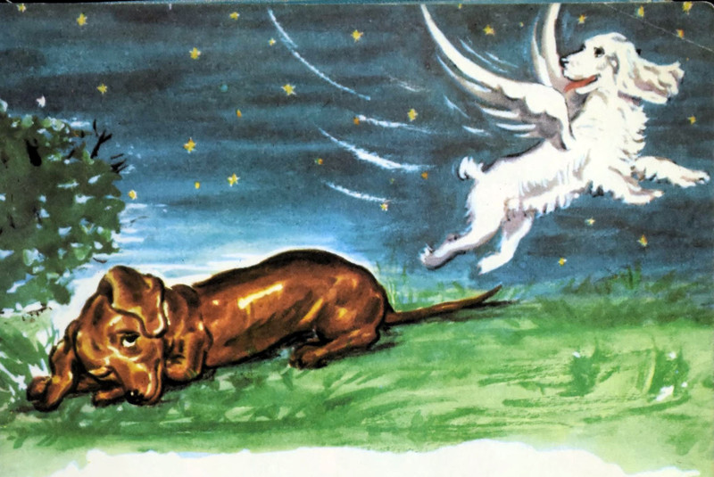 #vintage illustration #dog #1940s #illustration #winged dog #angel dog