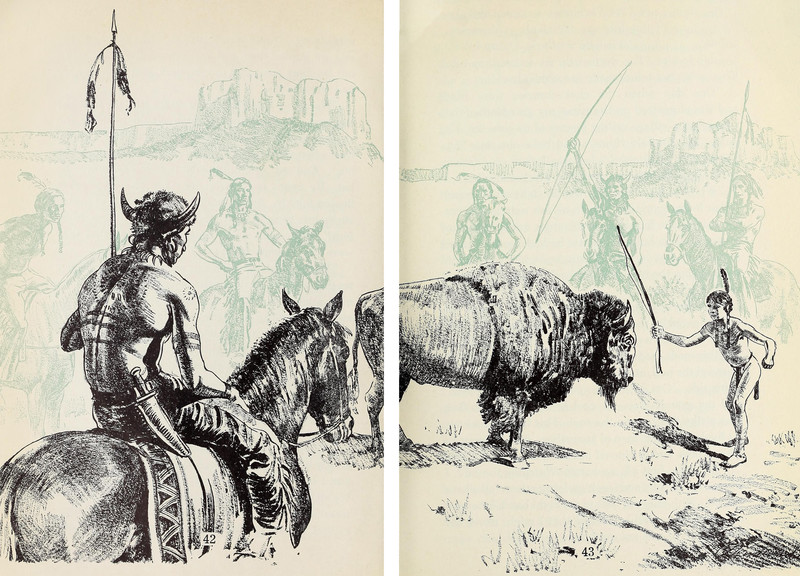 #vintage illustration #buffalo #native american #1940s #illustration