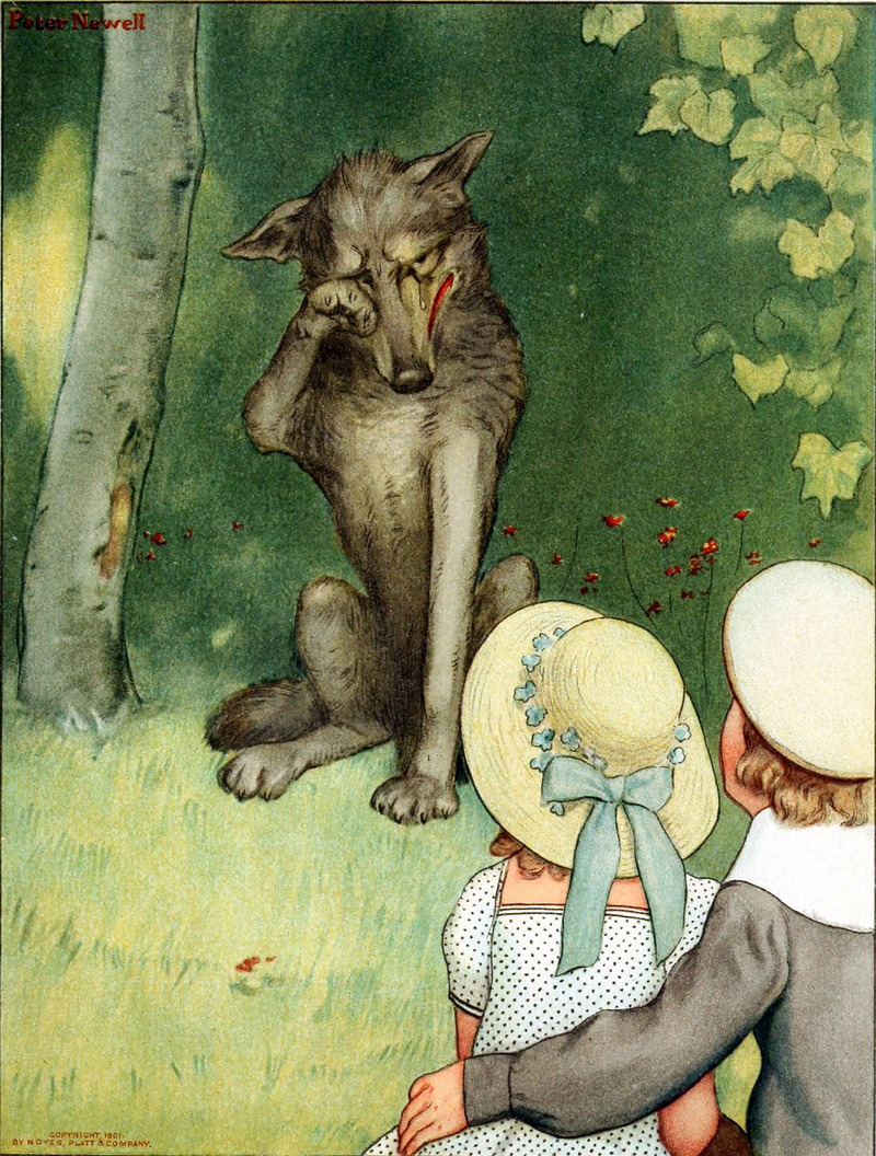 Red Ridinghood's wolf.  From Mother Goose's Menagerie by Carolyn Wells and illustrated by Peter Newell, 1901.