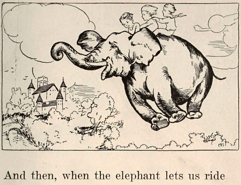 #vintage illustration #elephant #weightless #1920s #flying elephant #illustration