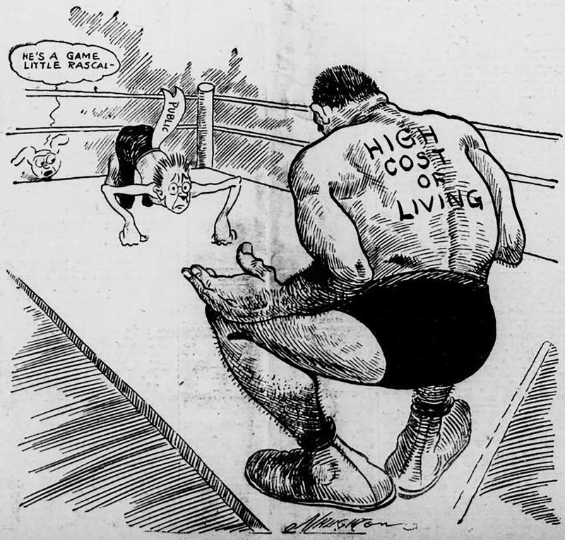 #vintage illustration #political cartoon #illustration #wrestling #1910s #cost of living