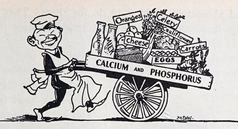 #vintage illustration #nutrition #chef #1930s #illustration #food #calcium #phosphorus