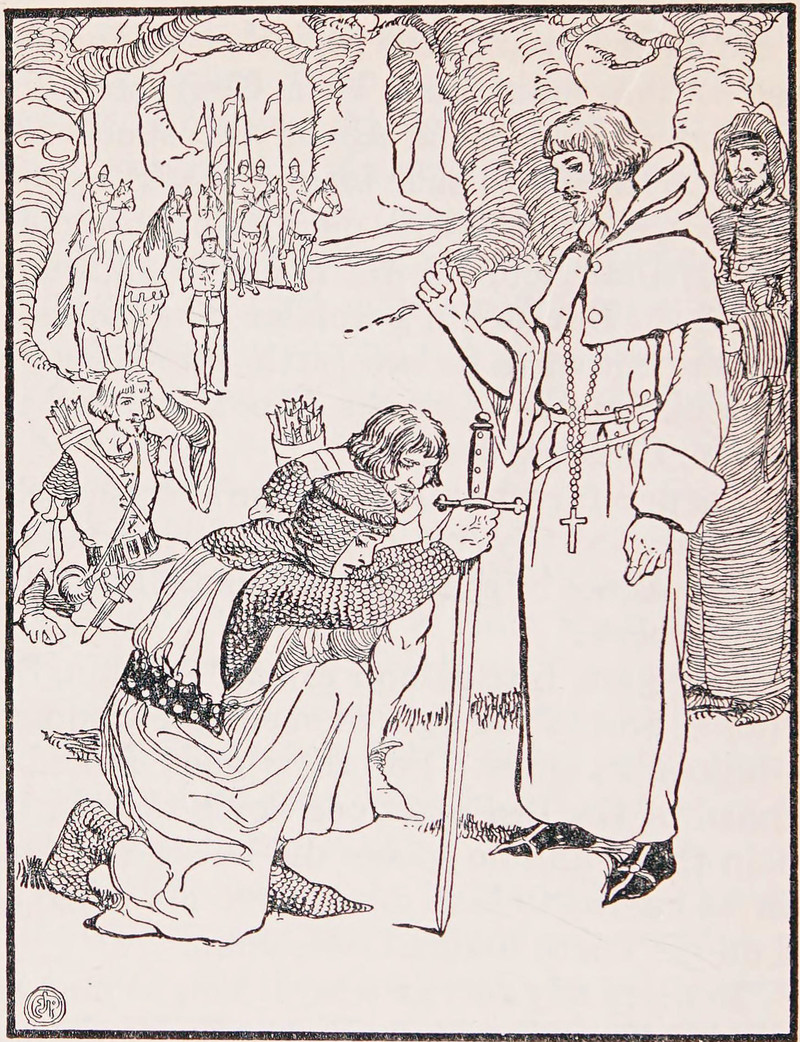 #vintage illustration #monk #sword #robin hood #1920s #illustration #friar
