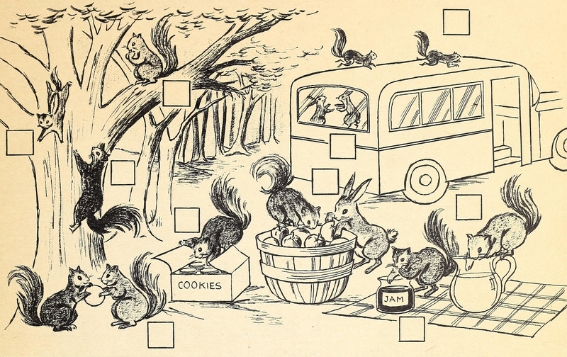 #vintage illustration #picnic #squirrel #1960s #illustration