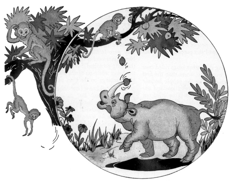 #vintage illustration #monkey #rhino #illustration #1950s #animal friends
