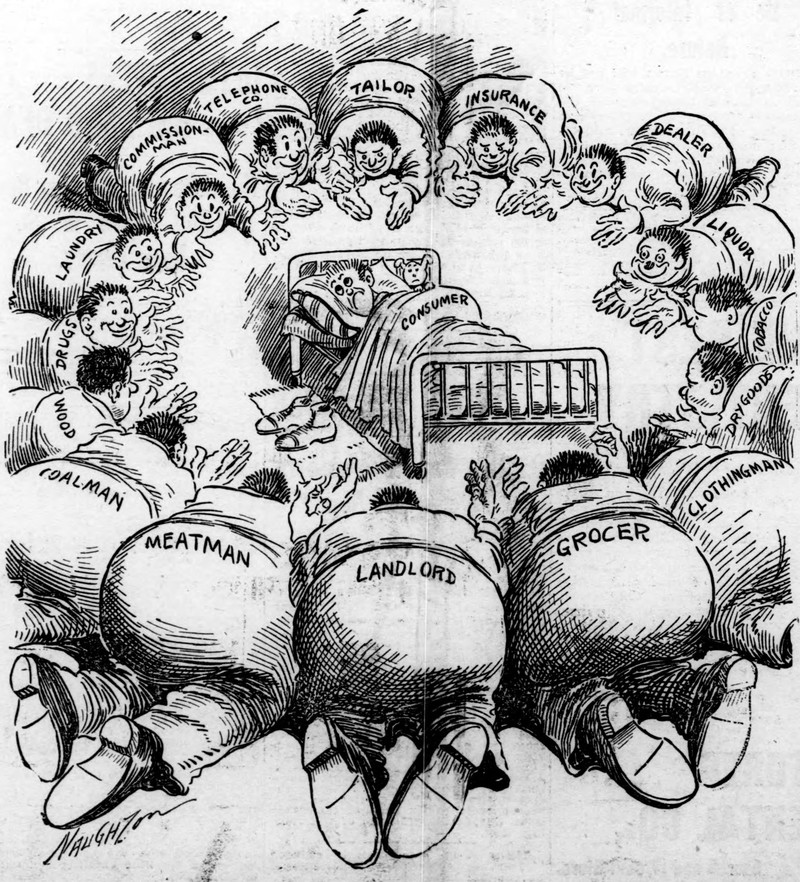 #vintage illustration #political cartoon #1900s #illustration #cost of living #consumerism