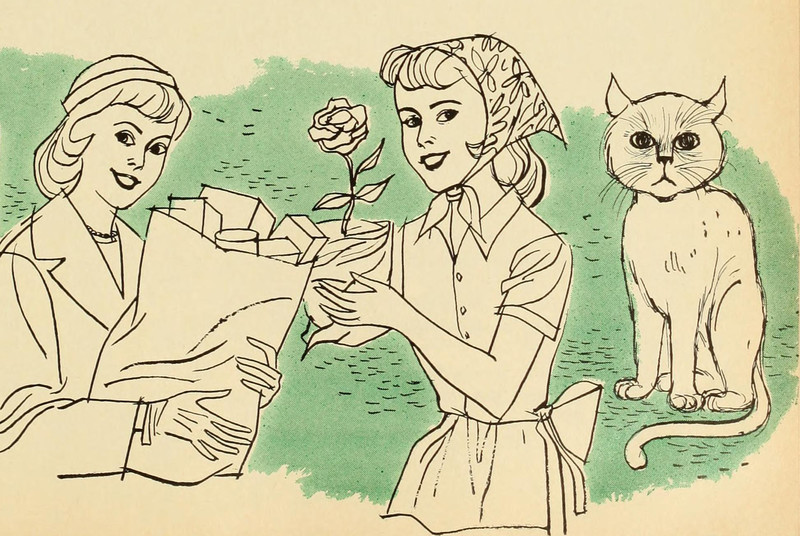 #vintage illustration #cat #flower #1960s #illustration #rose