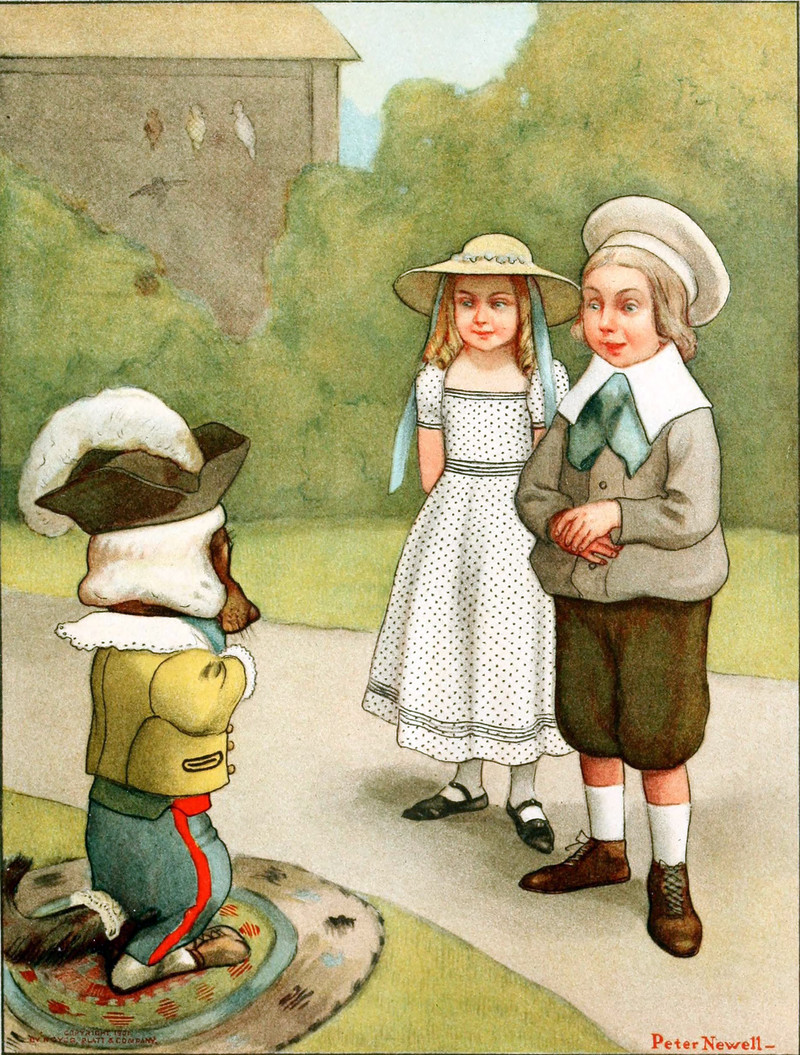 Mother Hubbard's dog.  From Mother Goose's Menagerie by Carolyn Wells and illustrated by Peter Newell, 1901.
