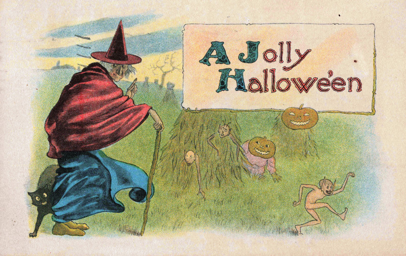 #vintage illustration #jack-o'-lantern #hallowe'en #vintage postcard #illustration #1910s #postcard