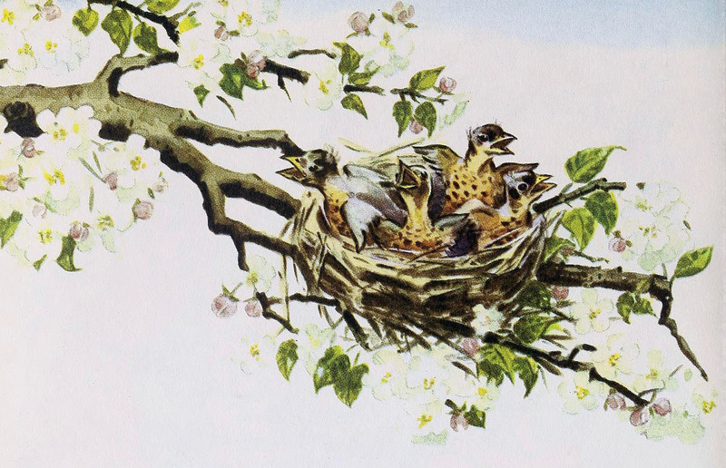 #vintage illustration #nest #bird #1940s #illustration