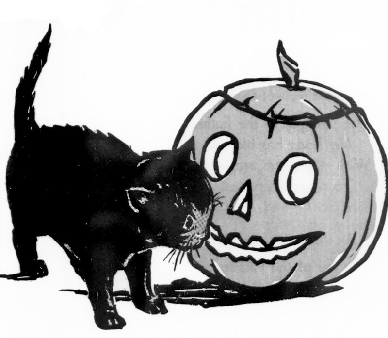 #vintage illustration #cat #jack-o'-lantern #hallowe'en #1930s #illustration #kitten