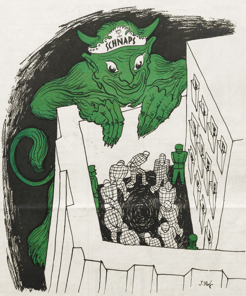 #vintage illustration #political cartoon #demon #alcoholism #alcohol #prison #1930s #illustration #schnapps