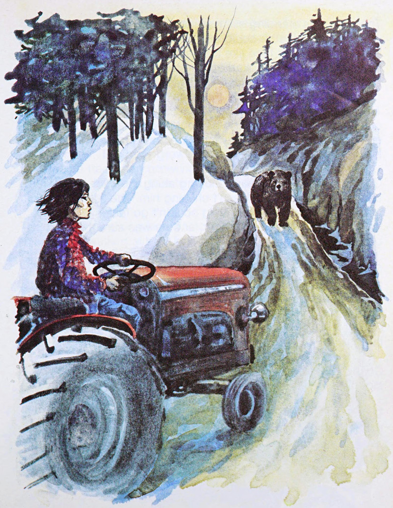 #vintage illustration #bear #1970s #illustration #tractor