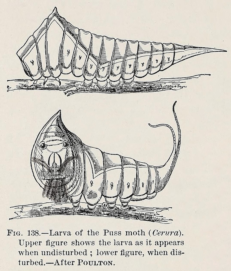 A disfigured moth larva.  From Animal Life, A First Book of Zoology by David Starr Jordan & Vernon L. Kellogg, 1902.