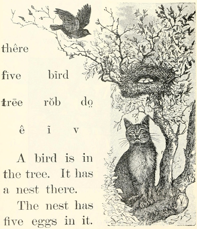 #vintage illustration #cat #nest #bird #1900s #illustration