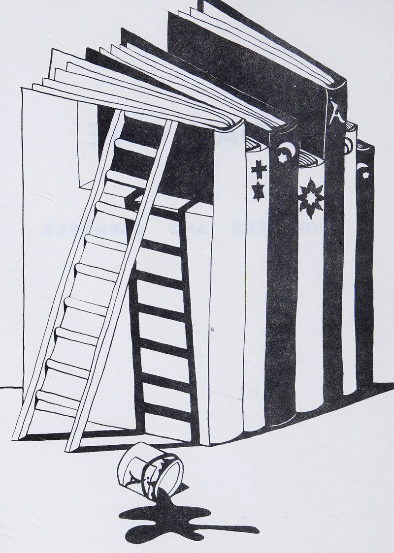 #vintage illustration #books #spilled ink #ladder #1970s #illustration