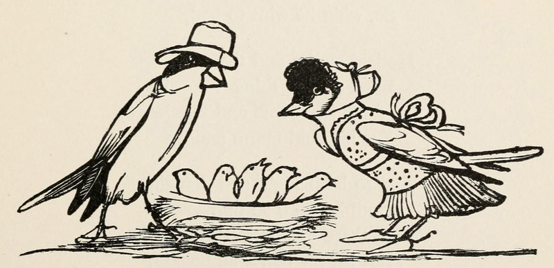 #vintage illustration #anthropomorphism #nest #bird #illustration #1880s