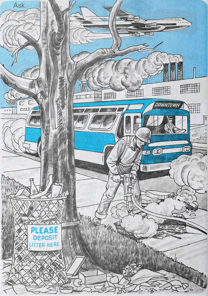 #vintage illustration #1970s #illustration #pollution #jackhammer