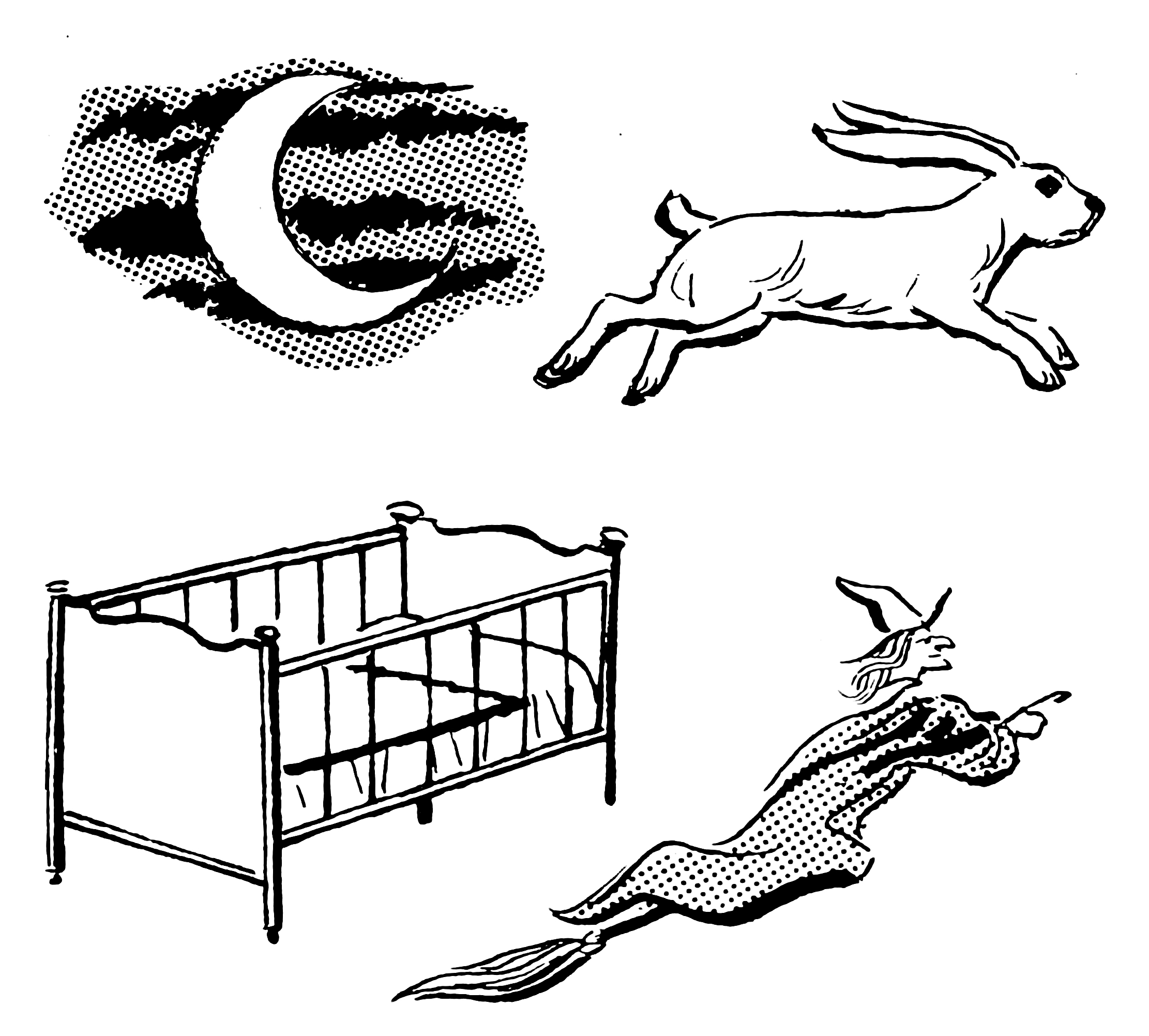 #vintage illustration #witch #moon #occult #rabbit #illustration #1950s