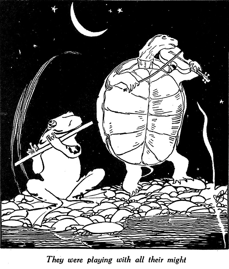 #vintage illustration #anthropomorphism #musical animal #1920s #illustration #musical frog #musical turtle