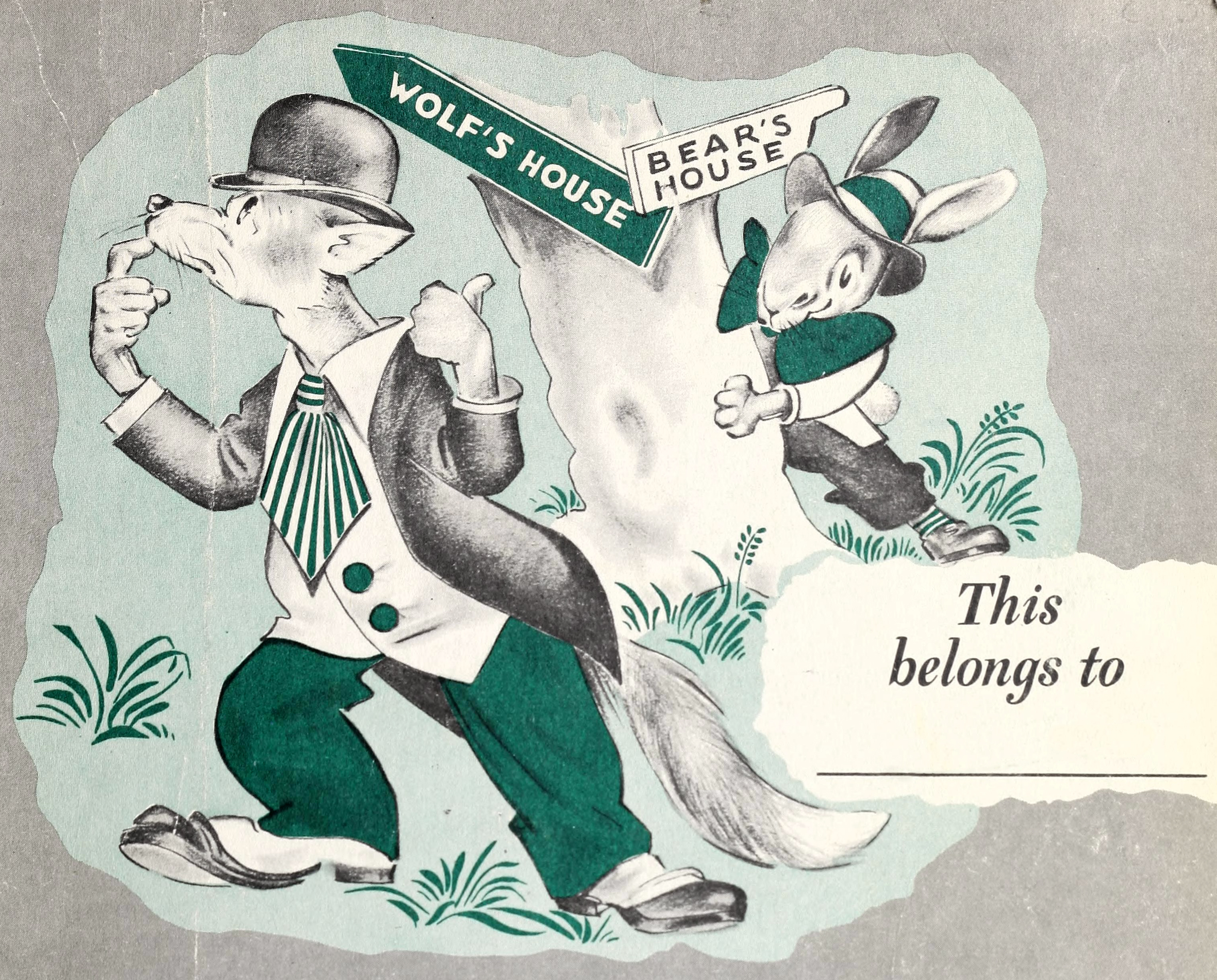 #vintage illustration #anthropomorphism #wolf #rabbit #ex libris #illustration #bookplate #1950s