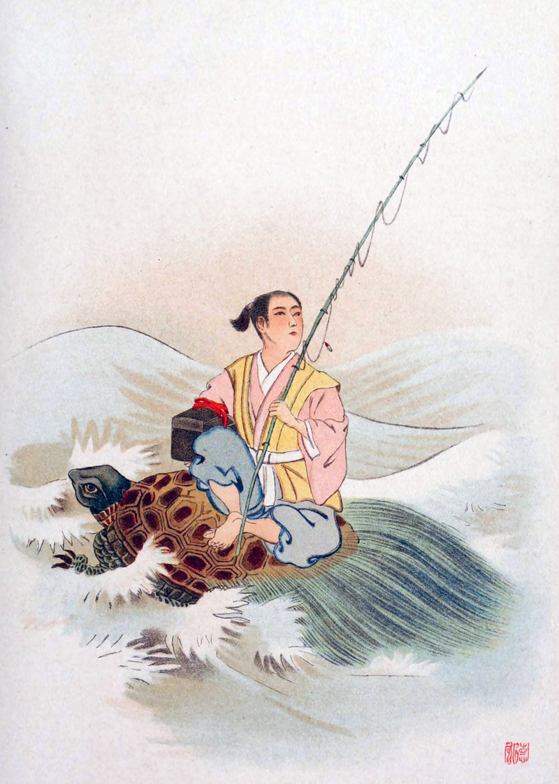 Urashima (the Japanese Rip van Winkle).  From Mythological Japan: The Symbolisms of Mythology in Relation to Japanese Art, with Illustrations Drawn in Japan by Native Artists by Alexander Otto & Theodore Holbrook, 1902.