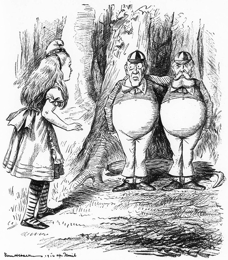 #vintage illustration #political cartoon #alice in wonderland #illustration #tweedledee #tweedledum #1910s