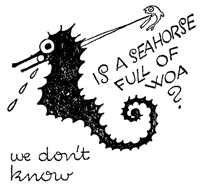 "Is a seahorse full of w[h]oa?"  From The Children's Newspaper, 1934.