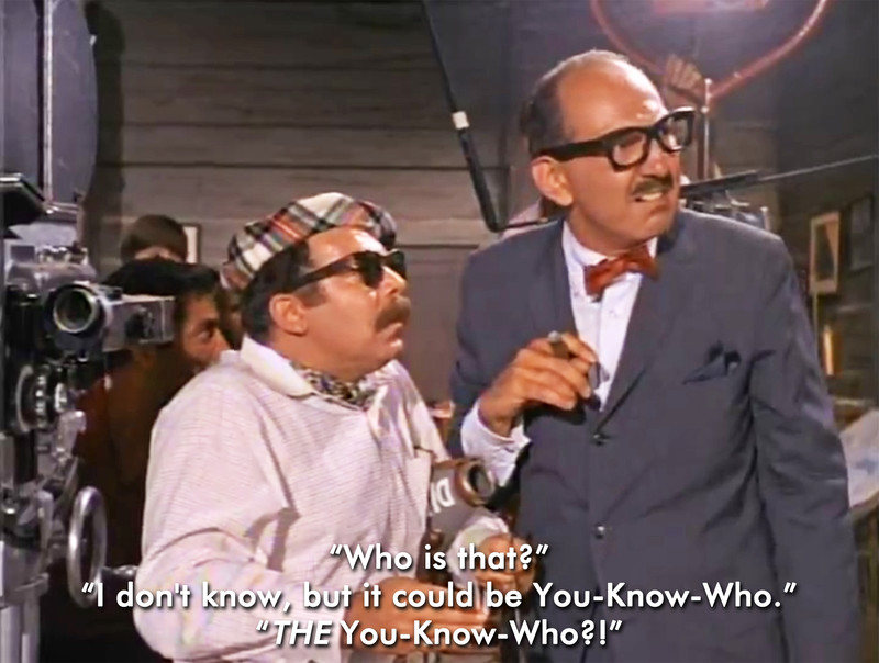 "Who is that?" "I don't know, but it could be You-Know-Who."  "THE You-Know-Who?!"  From the fever dream that is The Monkees, season 1, episode 12.
