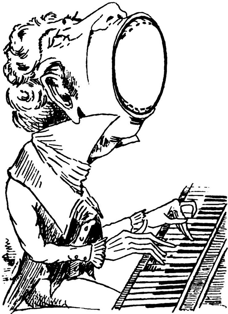 #vintage illustration #big mouth #ornate capital #piano #letter o #pianist #illustration #art
