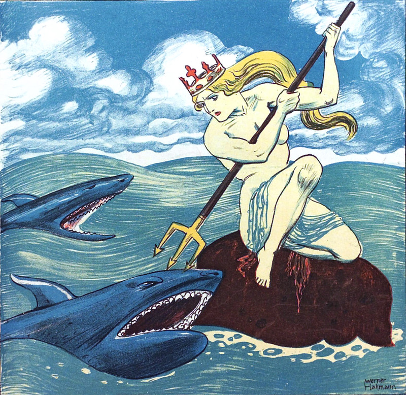 #vintage illustration #merman #under the sea #rude awakening #catfish