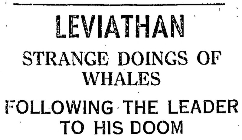 "Leviathan.  Strange doings of whales.  Following the leader to his doom."  From The Children's Newspaper, 1935.