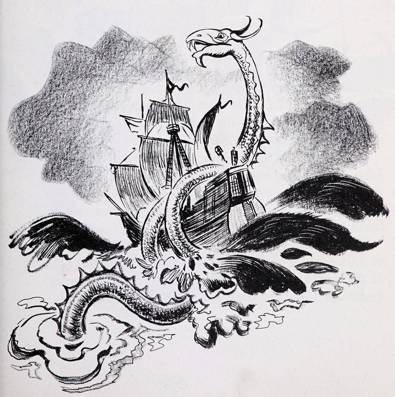 #vintage illustration #medieval #ship #sea monster #whale #illustration