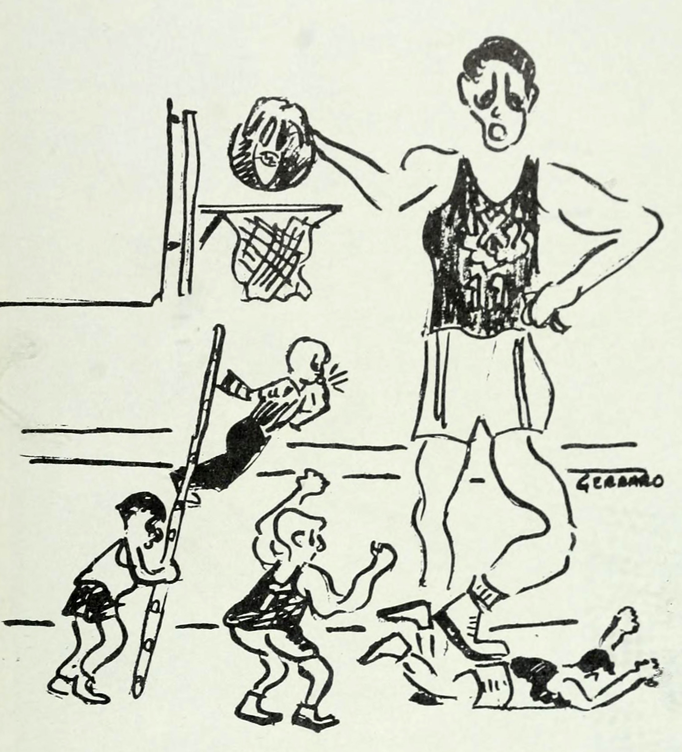 #vintage illustration #giant #vintage yearbook #yearbook #illustration #basketball #1950s