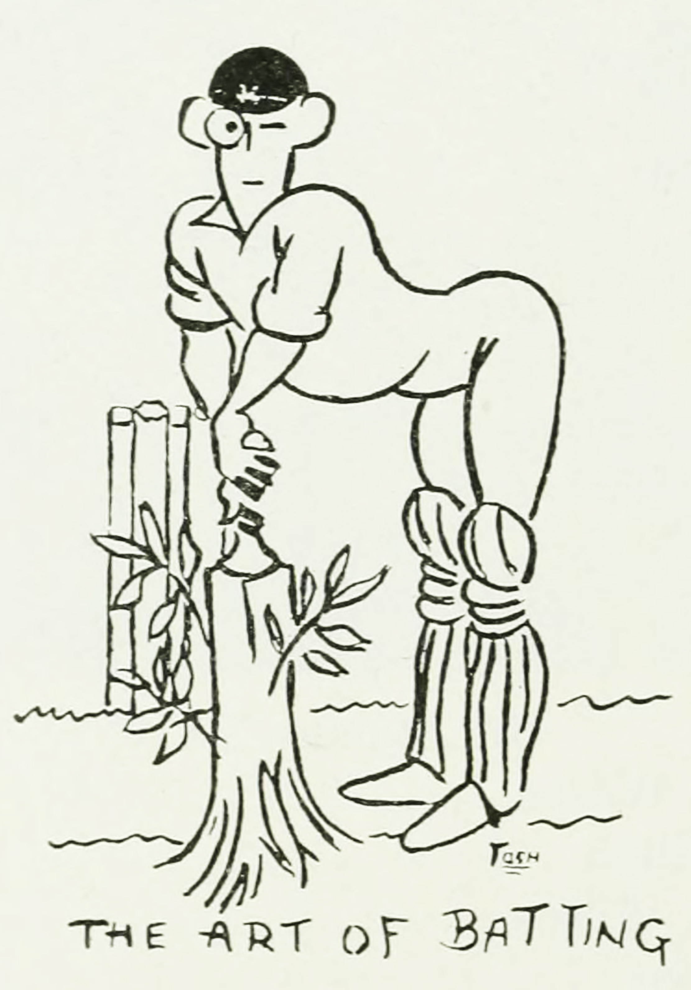 #vintage illustration #vintage yearbook #yearbook #cricket #monocle #1930s #illustration #cricket bat
