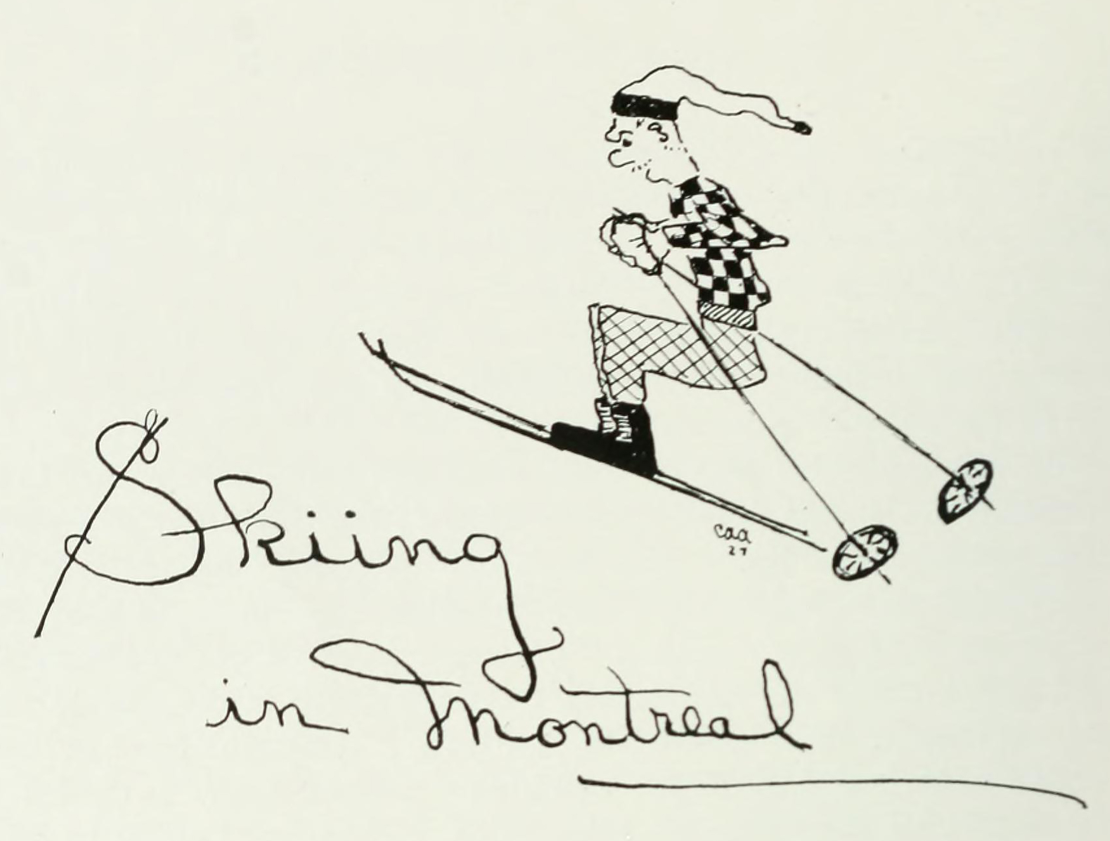 #vintage illustration #vintage yearbook #yearbook #1920s #montreal #illustration #skiing