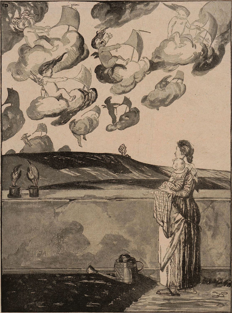 #vintage illustration #political cartoon #giant bird #lightning #god #giant vulture