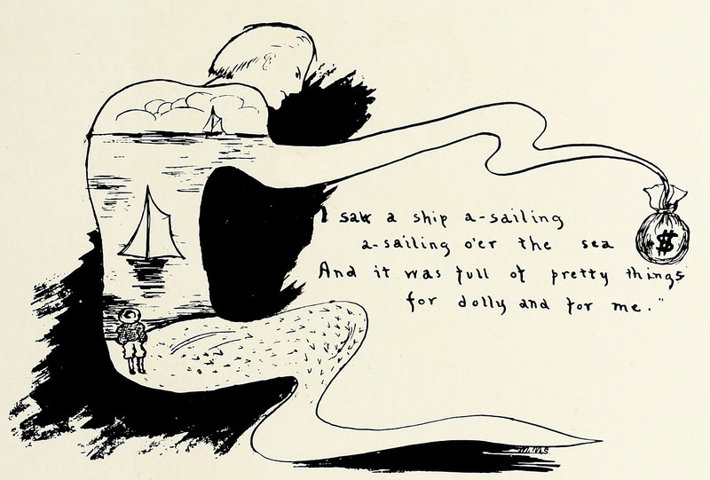 "I saw a ship a-sailing, a-sailing o'er the sea. And it was full of pretty things for dolly and for me." From Illinois Wesleyan University's 1909 yearbook.