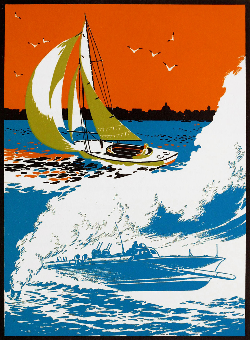 #vintage illustration #vintage yearbook #yearbook #boat #sailboat #1940s #illustration