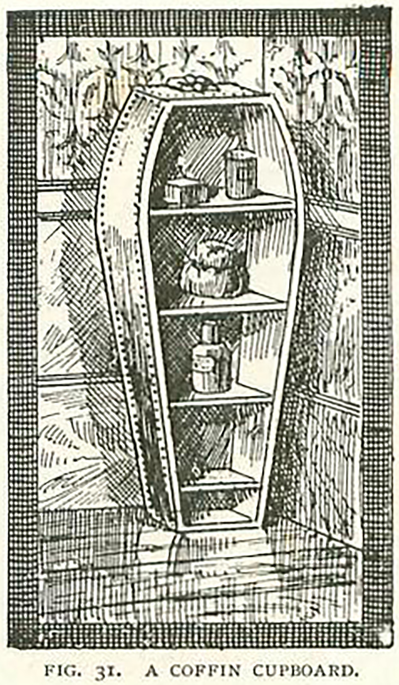#vintage illustration #coffin #1890s #illustration #cupboard #shelves