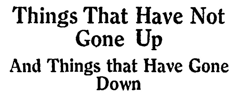 "Things that have not gone up amd things that have gone down."  From The Children's Newspaper, 1920.