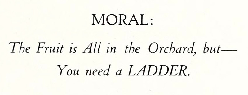 "Moral: The fruit is all in the orchard, but—you need a ladder."  From the United States Naval Academy's 1917 yearbook.